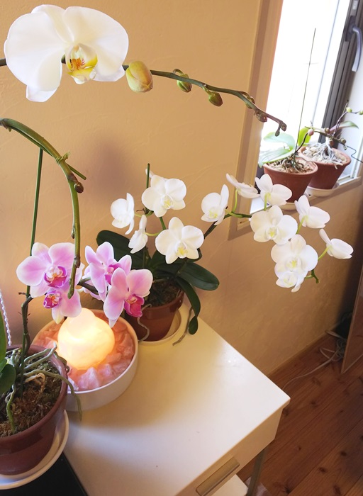 クリニックの診察室では、一昨年(2017年)の改装祝に業者さん方から頂戴した胡蝶蘭が今年もまた咲いています。
